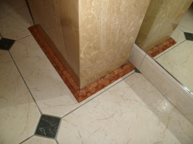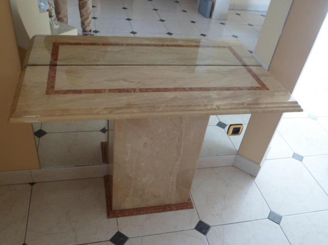 Console en marbre dimensions :1.20m de long et 35cm de large couleur beige .Sur le plateau une bande plus foncé dans le marron le support du pied est dans la même teinte.Prix :200 euros