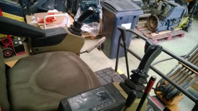 Équipée : canopy, lame, ligne hydraulique, chenilles caoutchouc, attache rapide KLAC et 2 godets (rétro et curage).