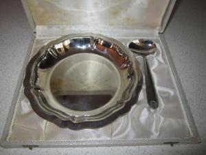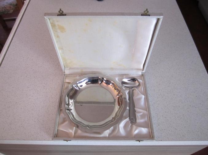 Ancien Coffret Assiette et Cuillère Inox