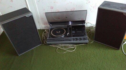 vend platine disque avec tuner et magnetophone.a changer courroie de la platine .le tout est en etat de fonctionnement vendue avec 2enceintes50watt