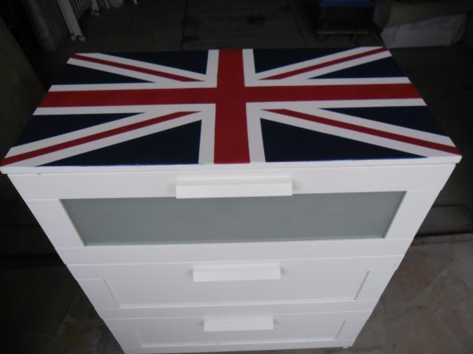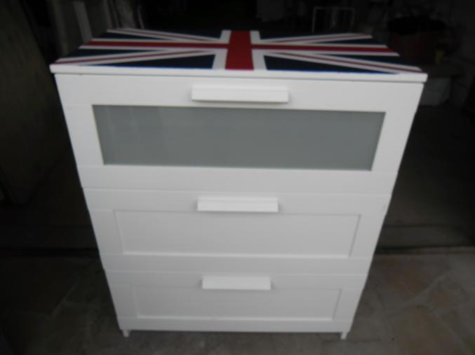 commode relooker drapeau anglais 3 grand tiroirs
