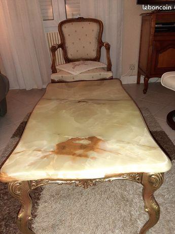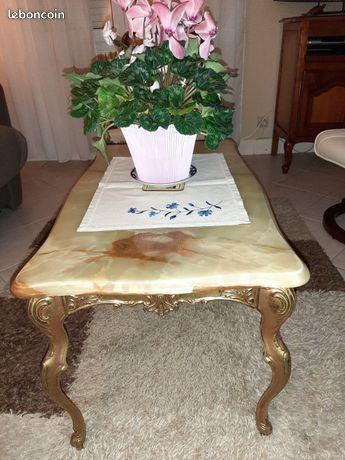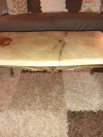 je vends cette table de salon en onyx en bon état pieds style louis XV