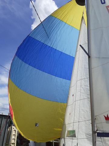 Mât alu Proctor. Bôme alu Elvström. Grand voile Elvström Racing. Foc North Sail jaugé régate. Spi. Dérive composite neuve. Lame de safran bois lamellé collé. Tête de safran alu + barre alu +stick alu.