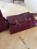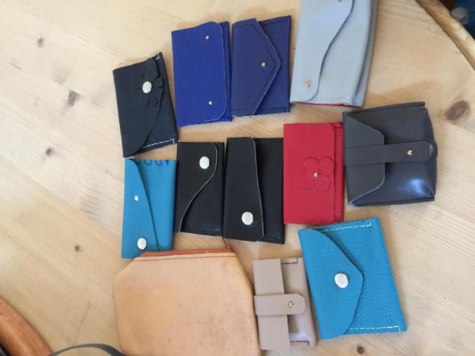 Lot comprenant : Sacs, pochettes, porte-monnaie ( doublés ou non ) Articles cousus main dans un cuir lisse brillant ou grainé