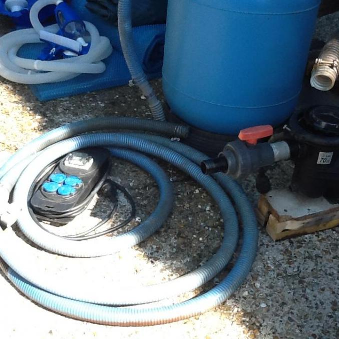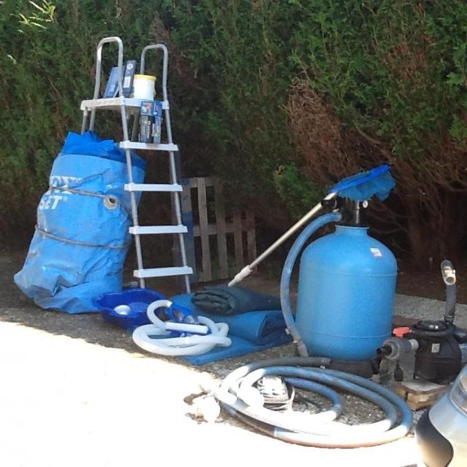 Vends piscine autoportante ronde Intex 4,57/1,22 très peu servie.Elle est équipée d'une pompe Iris 750M, d'un filtre à sable six voies, d'un réchauffeur Intex, d'une échelle sécurité avec marches amovibles, d'une bâche à bulles, d'une bâche de protection,d'un aspirateur de fonds, d'une épuisette et de divers matériels.Les notices et le DVD d'installation seront fournis.Le lot est a vendre complet je ne vends pas au détail.