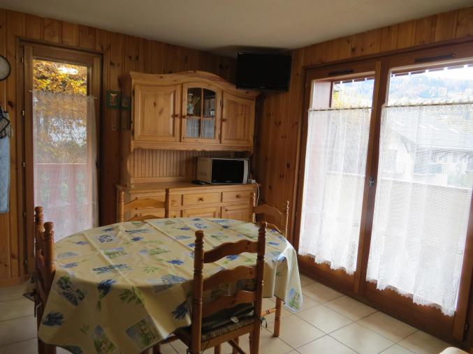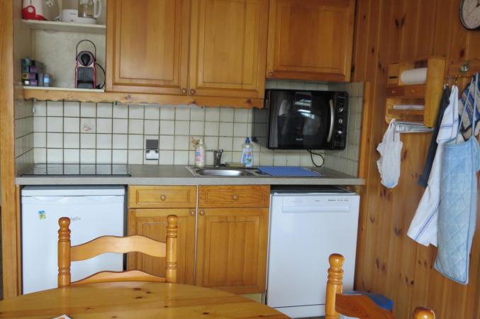 Situé au 1er niveau, cet appartement de 36 m2 comporte une chambre avec un lit double, une chambre avec deux lits superposés, une cuisine aménagée (four, réfrigérateur, plaques vitrocéramiques, micro-ondes, lave-vaisselle, lave-linge, téléviseur), un séjour avec une banquette-lit pour 2 personnes et un beau mobilier en pin, un balcon équipé de table et chaises, WC et salle de bains séparés.A disposition un casier à skis et parking privé.