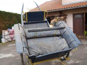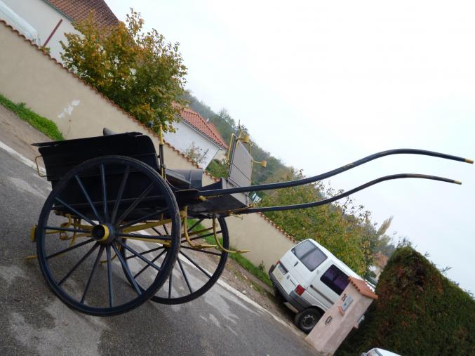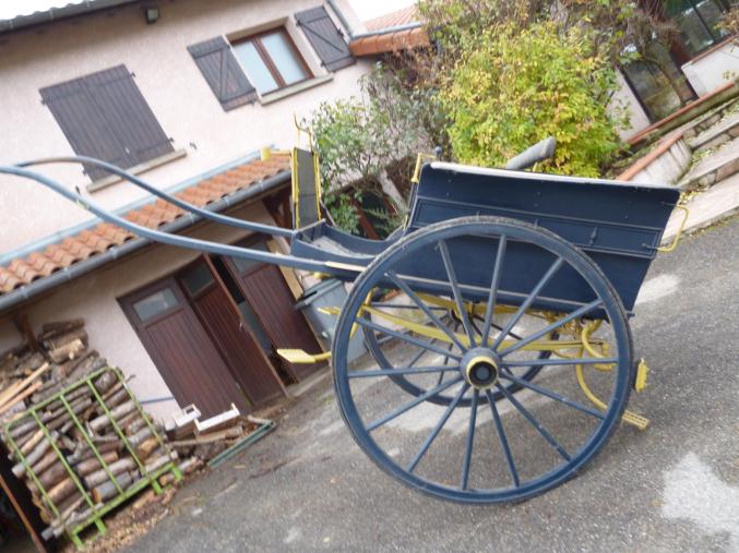 vend calèche entièrement rénovée ,deux roues ,très confortable ;roues caoutchoutée ,freinée ,quatre places ,bon état